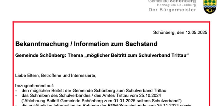 Sachstand zum Thema „möglicher Beitritt zum Schulverband Trittau“
